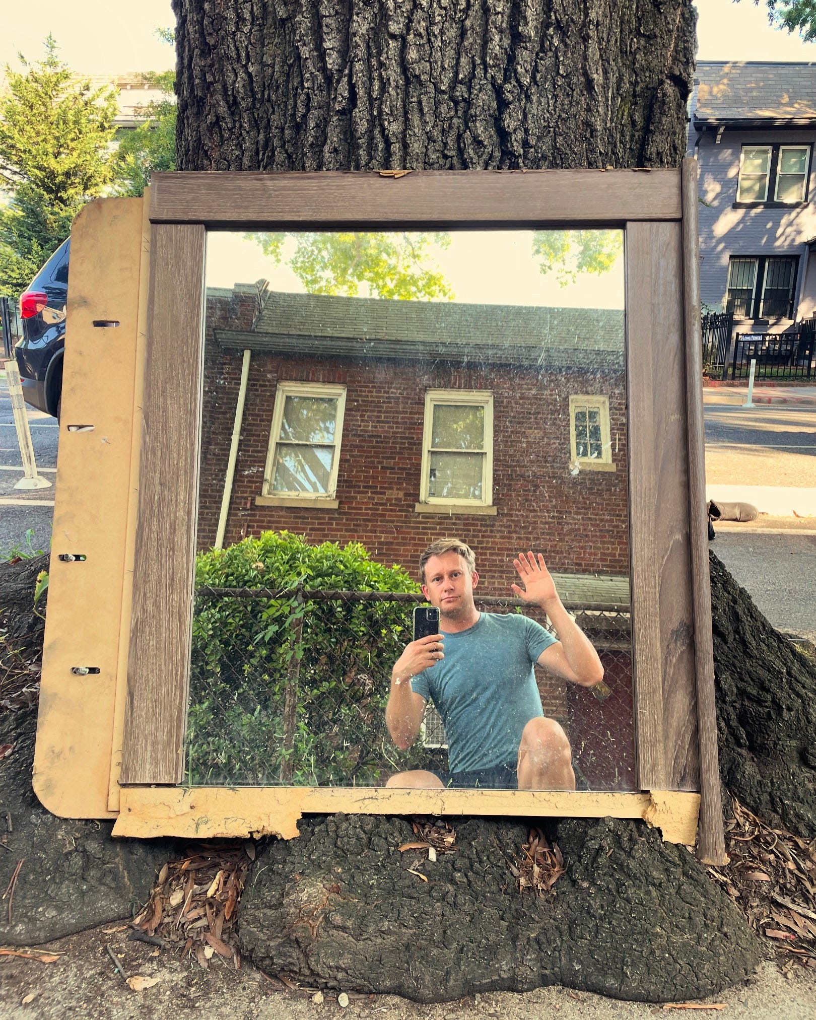 Chris Scott is right there, reflected in that sidewalk mirror! He writes weird fiction, contributes to the beautifully absurd ClickHole, and teaches elementary school in DC. He’s written some very odd and fascinating stories (like “Inside It Now” in ergot.) already in his relatively short time in this publishing ecosystem. Please read on to get to know him better! And you can also find him here.